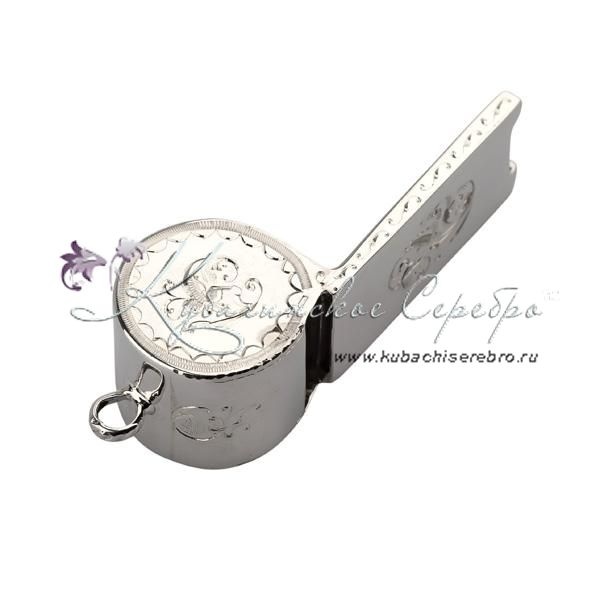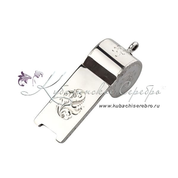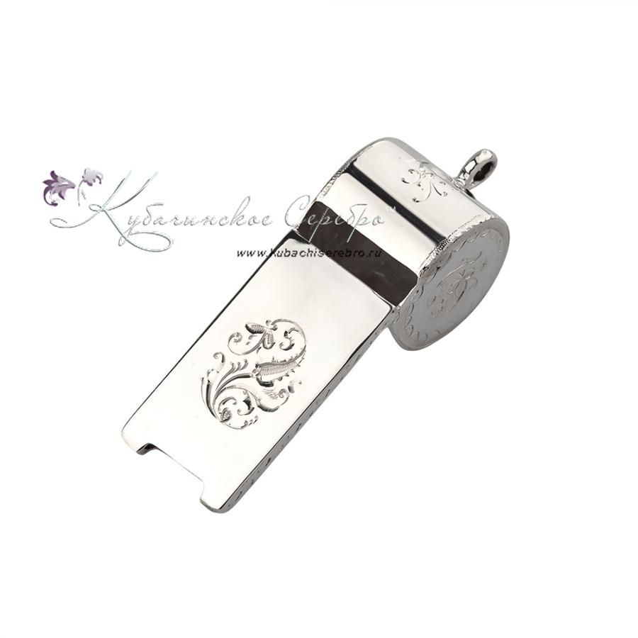 Свисток из серебра без черни с гравировкой, арт №6528