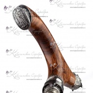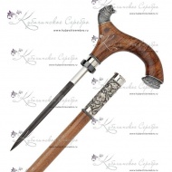 Серебро 875 пробы. Трость ручной работы, в премиумном исполнении от мастера высокой квалификации! Внутри скрыто оружие - штык из дамасской стали. Ручка выполнена из корня дубового дерева, основание из дуба, покрыты лаком. Гарантия высшего качества от фирменного магазина!