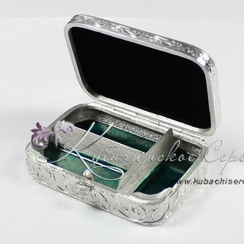 Серебро 875 пробы. Внутреняя часть состоит из трех отсеков, обработана флоком и покрыта холодной эмалью.
