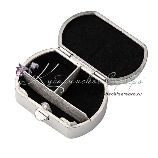 Серебро 875 пробы. Внутреняя часть состоит из трех отсеков, обработана бархатом. Возможно нанесение подарочной надписи или любого рисунка.