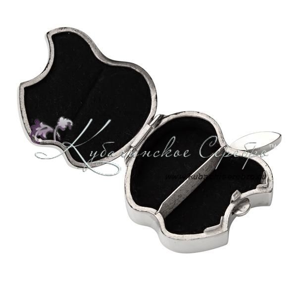Серебро 875 пробы. Внутреняя часть состоит из двух отсеков, обработана бархатом.