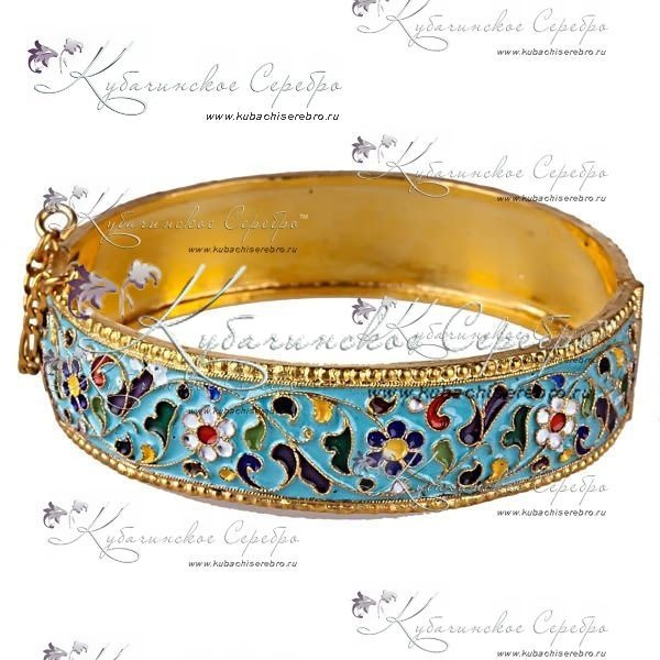Серебряный браслет с эмалью и позолотой "Незабудка", арт №3301