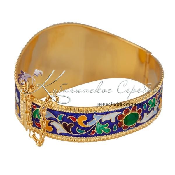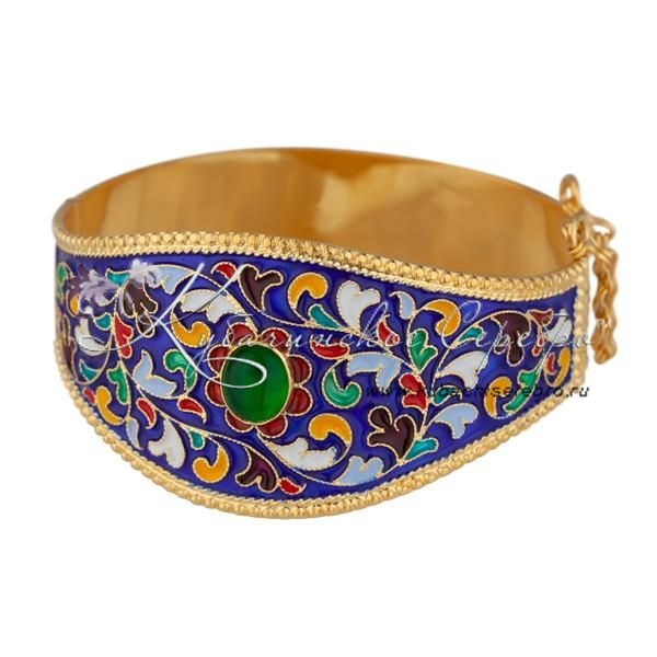Браслет с горячей эмалью и зеленым камнем , арт №3359
