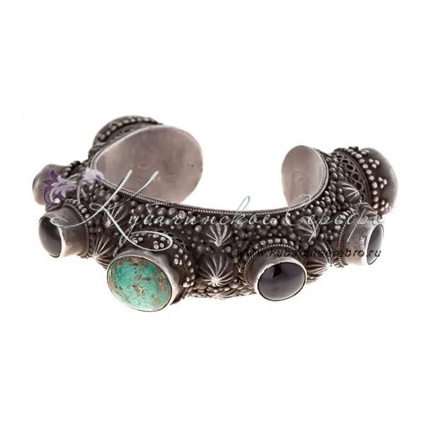 Серебро 925 пробы. Вставки- натуральные камни альмандин, бирюза. Искусство обработки металла передается от отца к сыну! Полностью ручная работа!