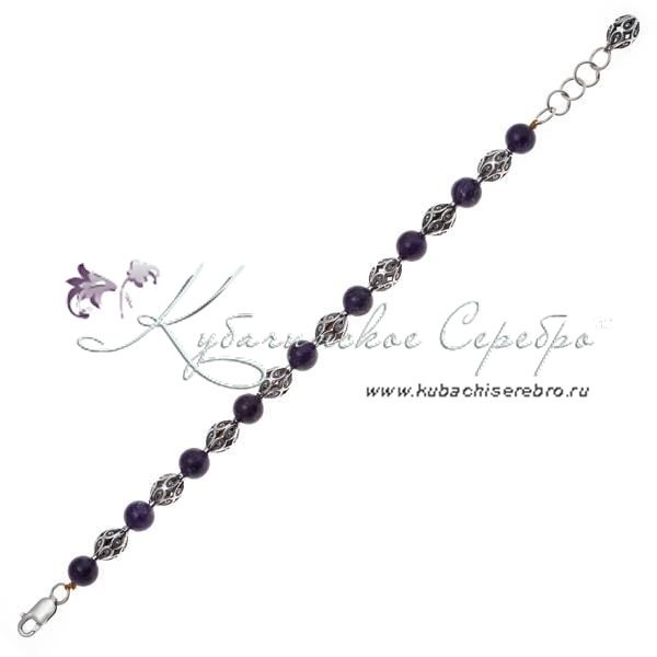 Браслет-бусы серебряные, камень чароит, арт №8363/2