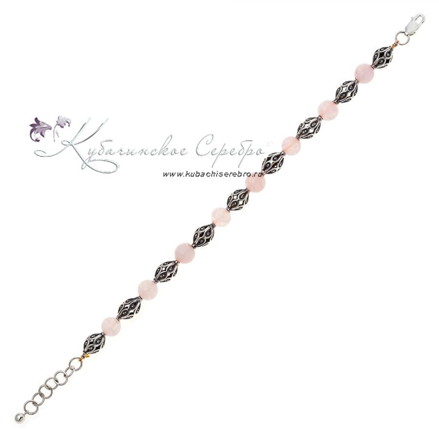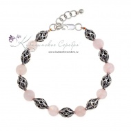 Браслет-бусы из серебра с розовым кварцем, арт №8363/3