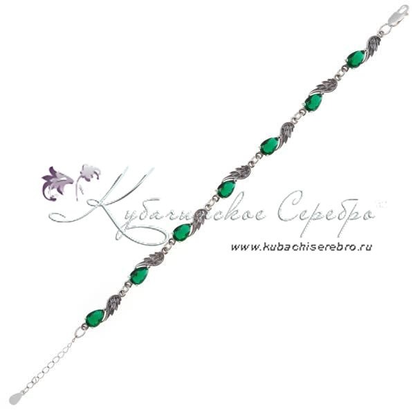 Серебряный браслет «Крылья» с зеленым камнем, арт №8369/3