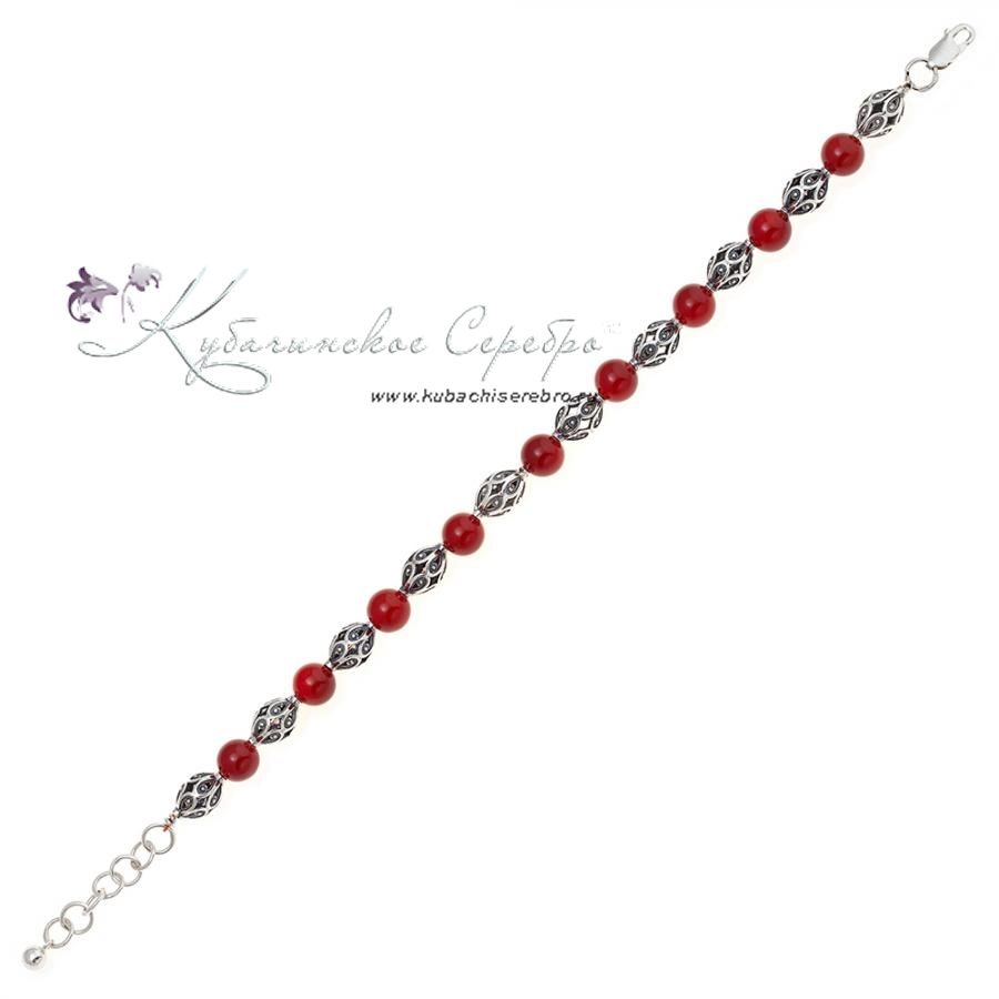 Браслет-бусы из серебра с кораллом, арт №8363/5