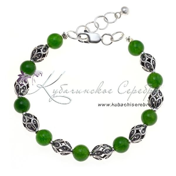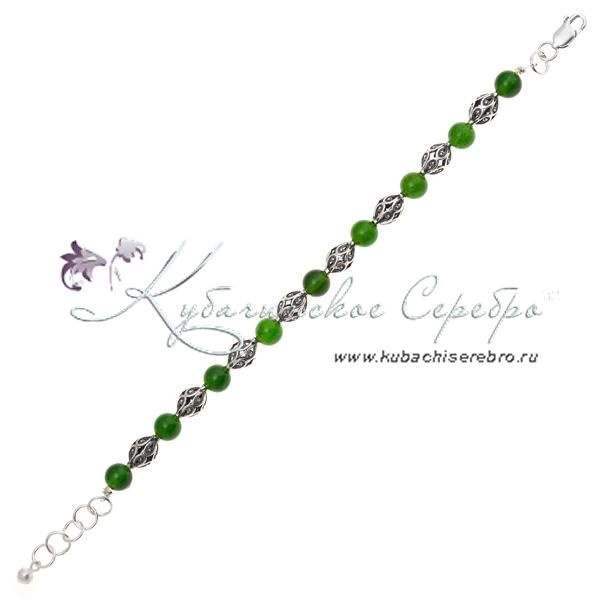 Браслет-бусы серебряный с нефритом, арт №8363/6