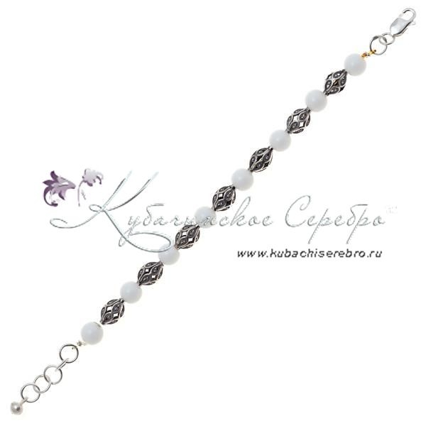 Браслет-бусы серебряный с белым агатом, арт №8363/7