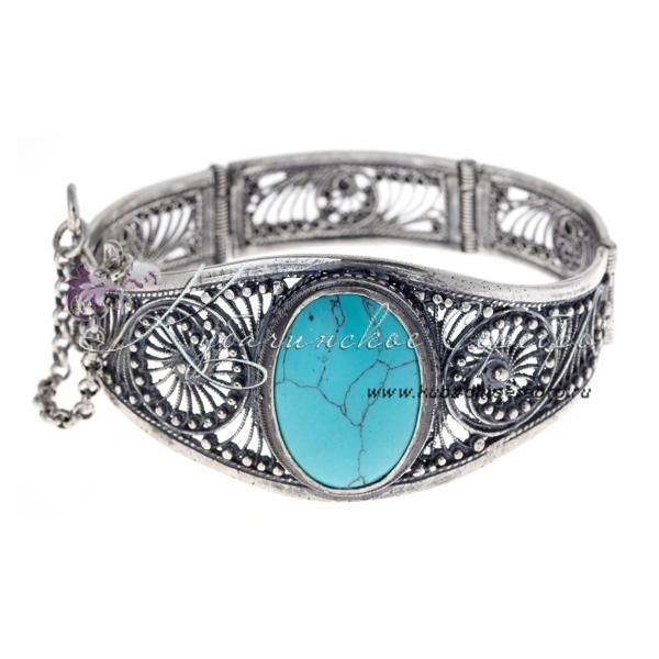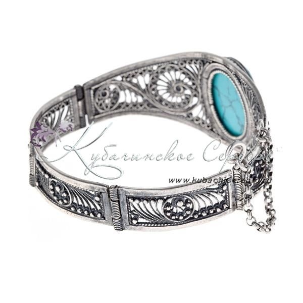 Серебряный браслет оксидированный с бирюзой, арт №3937