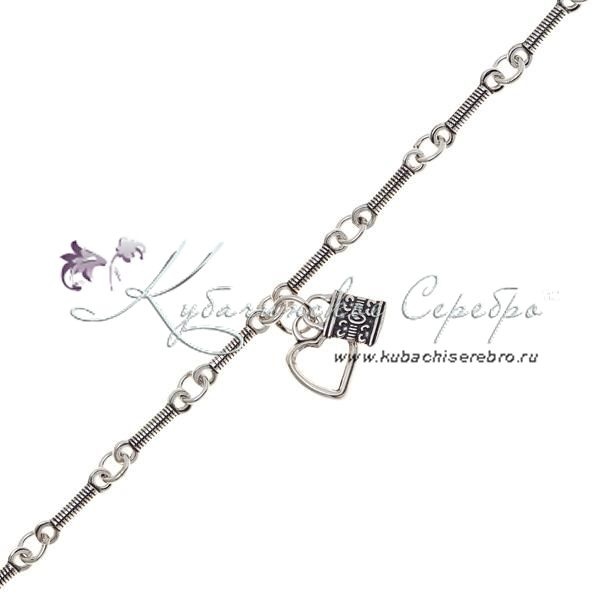 Браслет серебряный "Сердце и замочек" , арт №3734