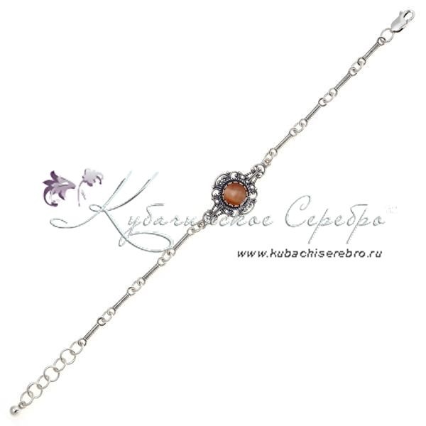 Браслет серебряный с камнем "кошачий глаз" (Новинка), арт №3400