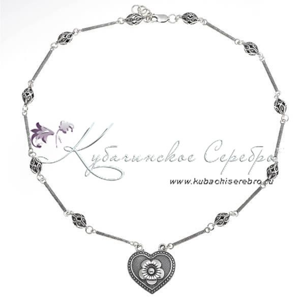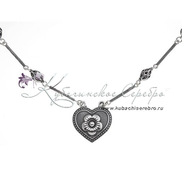Серебряное колье "Сердце" с ромашкой, арт №4589
