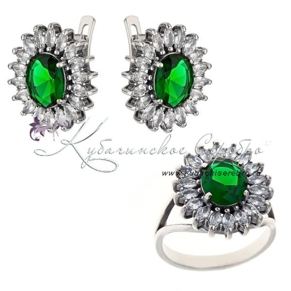 Комплект серебряный с зеленым камнем, арт №8505/4