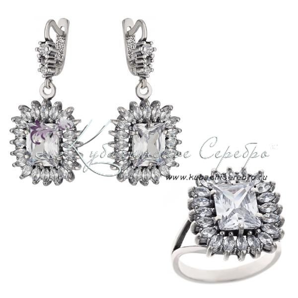 Комплект серебряный с цирконом, арт №6696