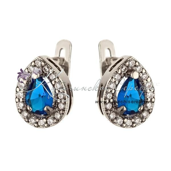 Серьги серебряные с синим камнем "Капелька", арт №6814/14