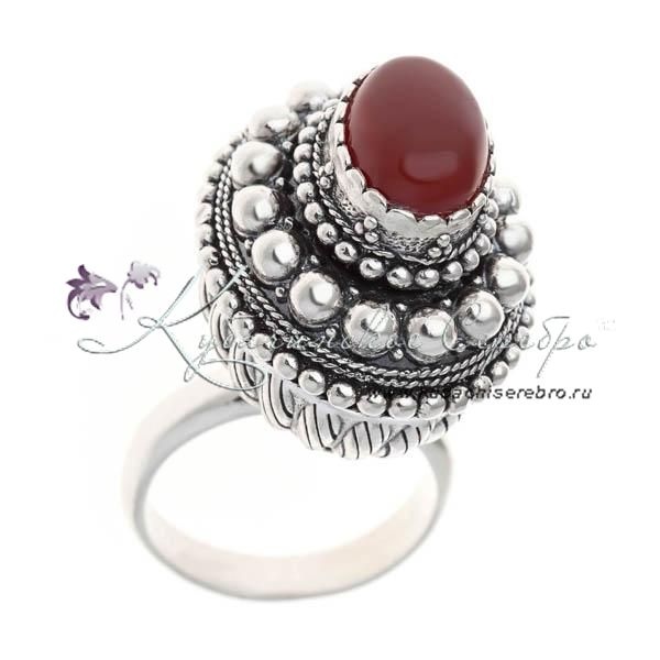 Кольцо кубачинское высокое с сердоликом, арт №8367