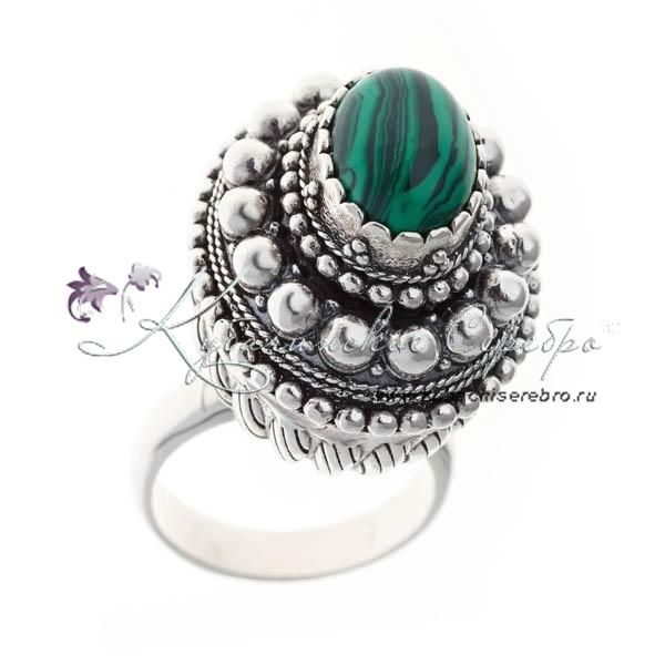 Кубачинское высокое кольцо с малахитом, арт №8367/2