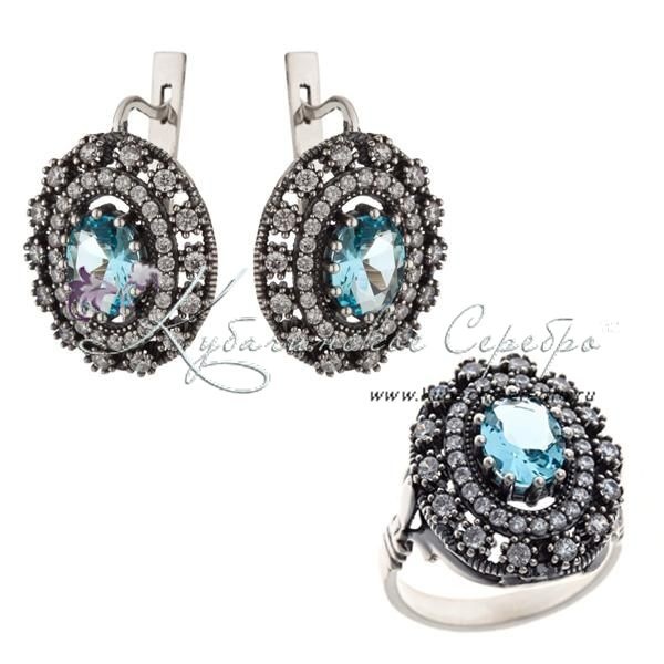 Комплект серебряный с циркониями, арт №6956