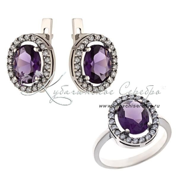Комплект серебряный с аметистом, арт №6975
