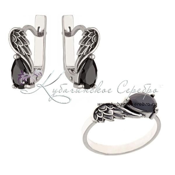 Комплект из серебра "Крылья" с агатом, арт №8290/4