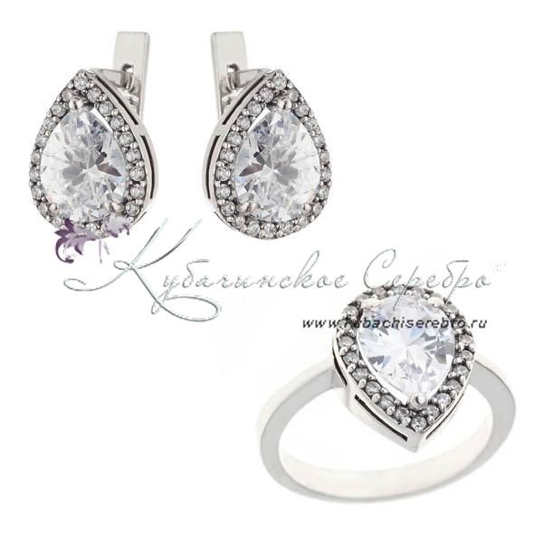Комплект серебряный "Капелька" с белым камнем, арт №8019/8