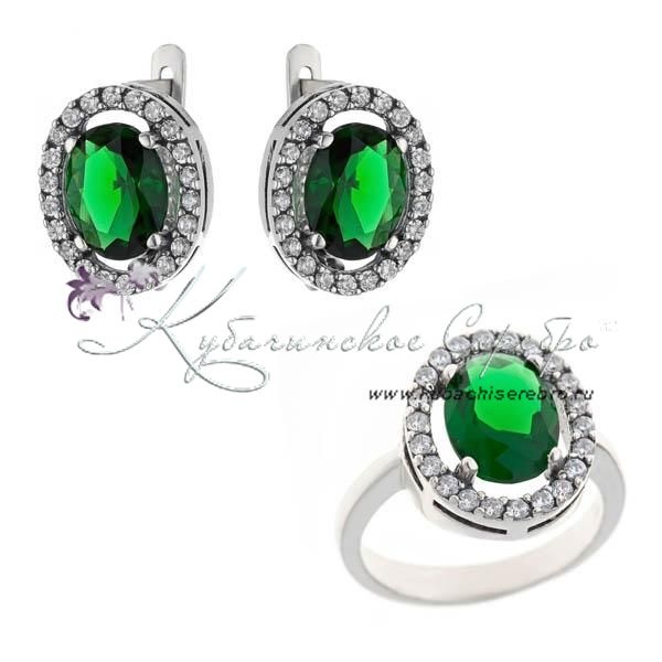 Комплект серебряный с зеленым камнем, арт №6975/2