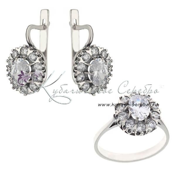 Комплект серебряный с белым камнем, арт №8393
