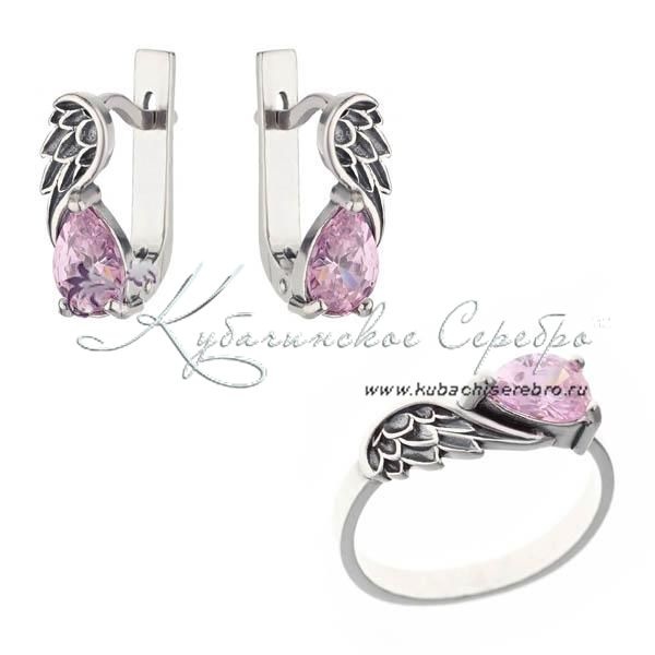 Комплект серебряный "Крылья" с камнем, арт №8290/6