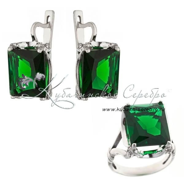 Комплект серебряный с зеленым камнем, арт №8284/1