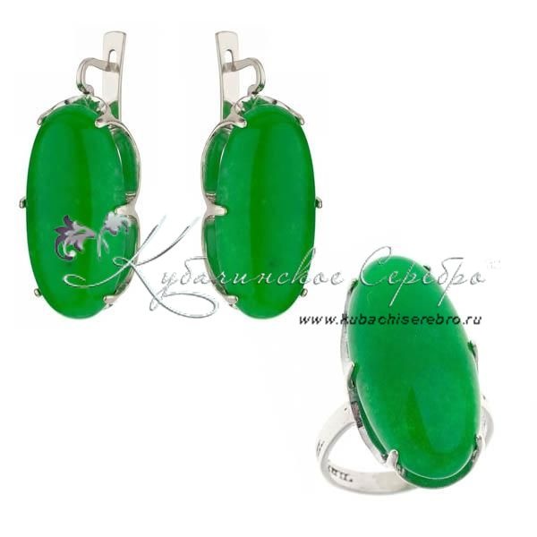 Комплект серебряный с зеленым агатом, арт №8366/3