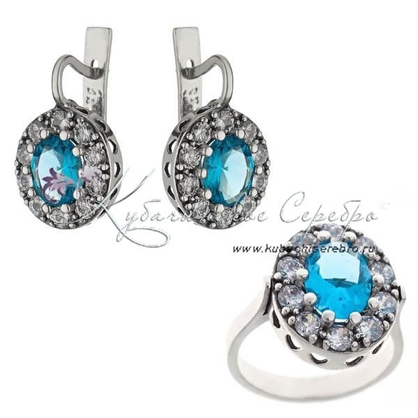 Комплект серебряный "Небеса" с голубыми камнями, арт №8499
