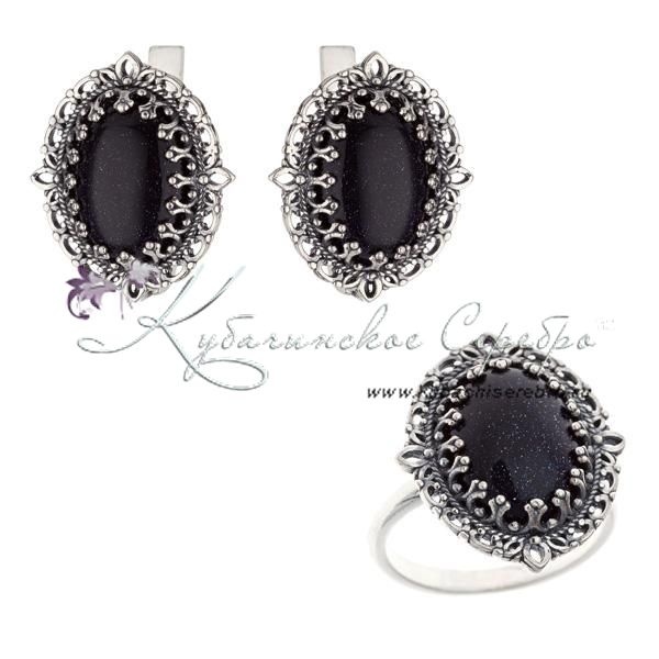 Комплект из серебра, камень авантюрин черный, арт №4403