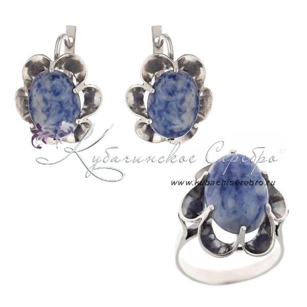Комплект серебряный, камень содалит, арт №4439