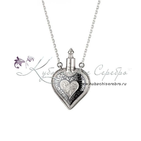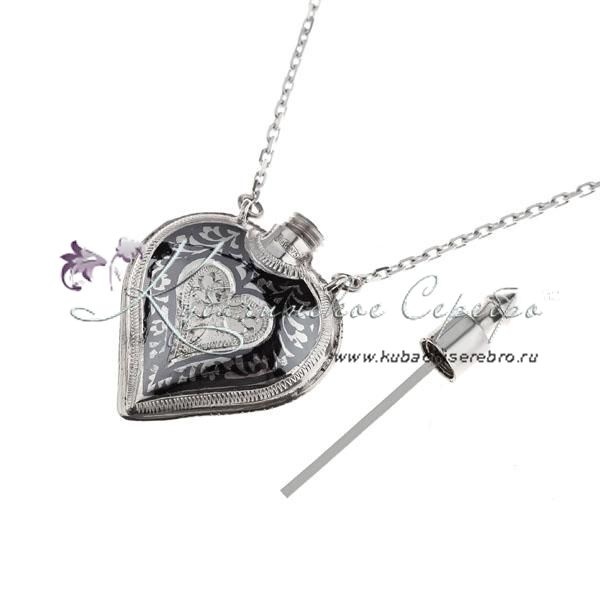 Серебряный кулон-флакон для духов "Сердце" , арт №8222