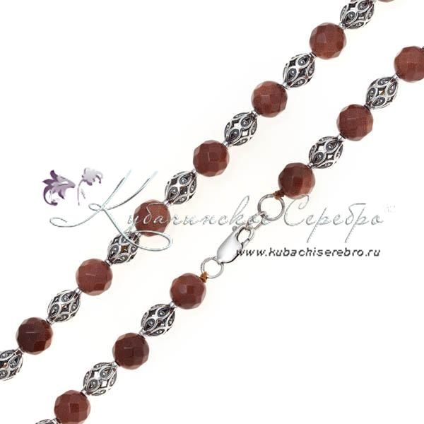 Бусы серебряные, камень золотой песок, арт №8362/1