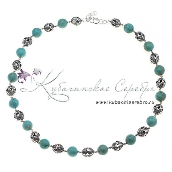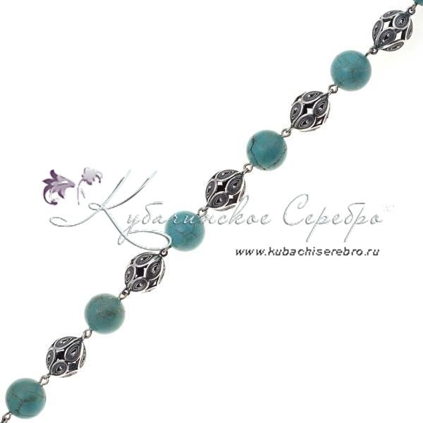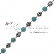 Крупные бусы серебряные с бирюзой , арт №8446/1