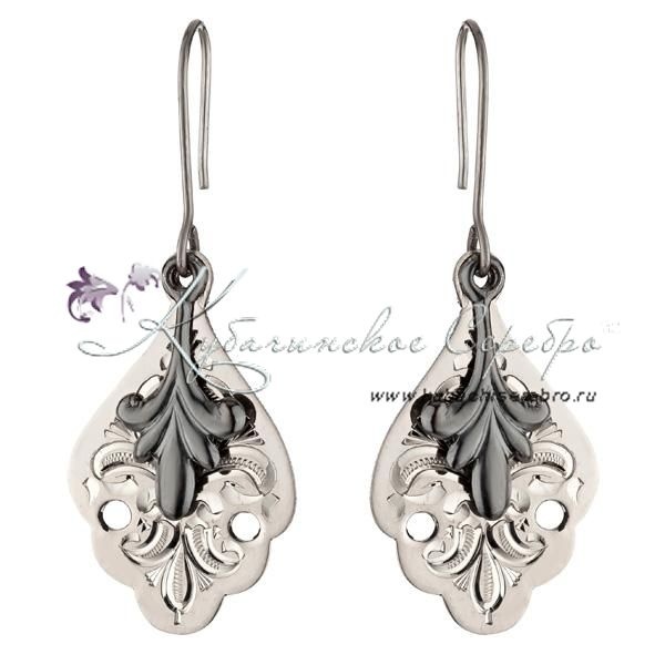 Серебряные серьги без черни с оксидированием, арт №6988