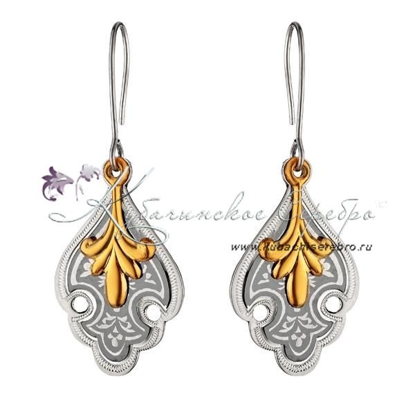 Серебряные серьги с чернением и позолотой, арт №6989/1