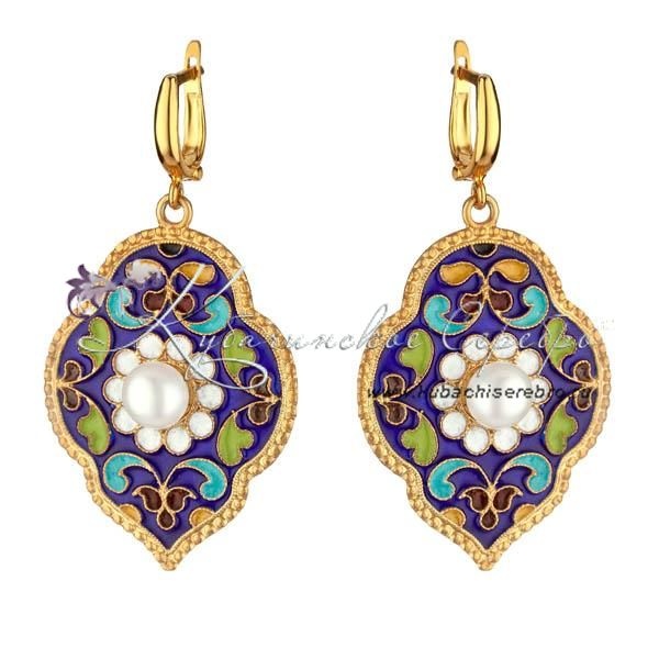 Серебро 875 пробы. Покрыты золотом 999 пробы. Серьги с цветной горячей эмалью, В фирменной подарочной упаковке.