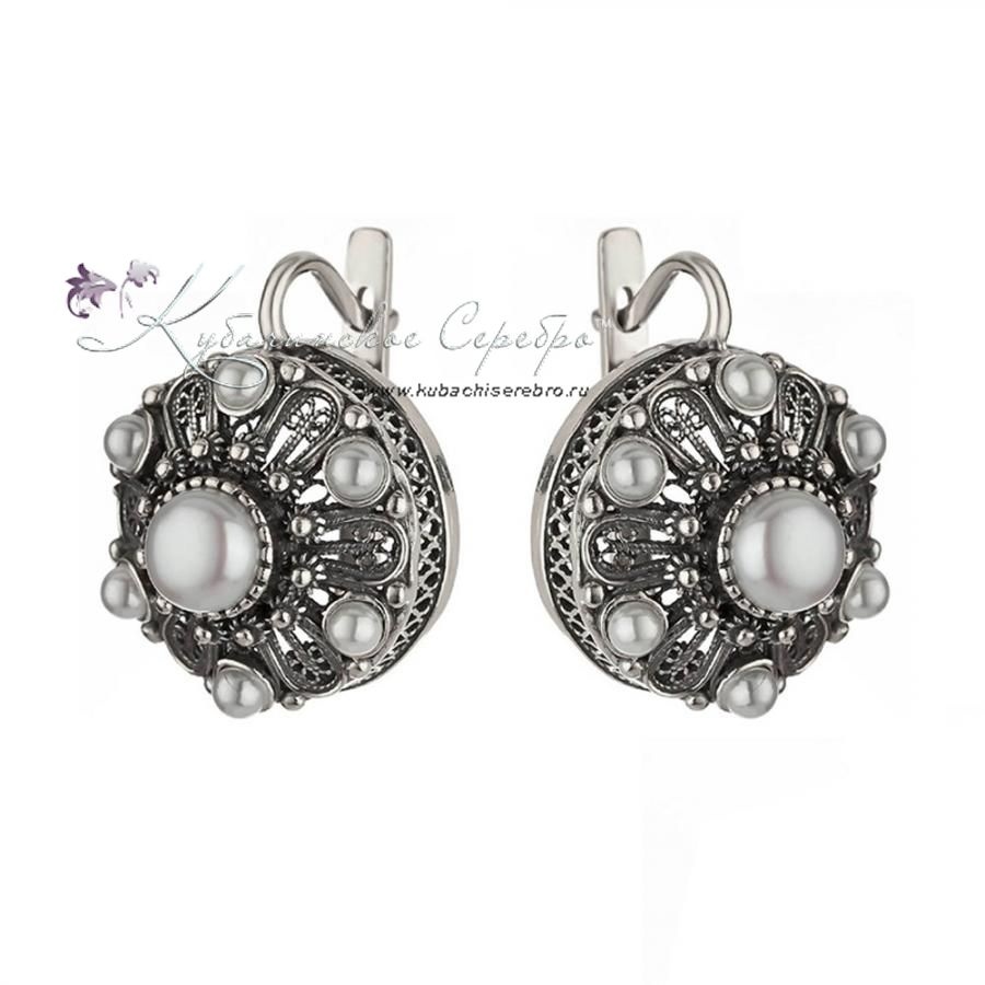 Серьги серебряные с жемчугом (Новинка), арт №8429