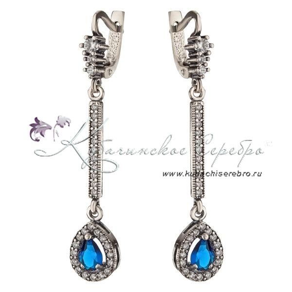 Серьги серебряные с синим камнем , арт №6811
