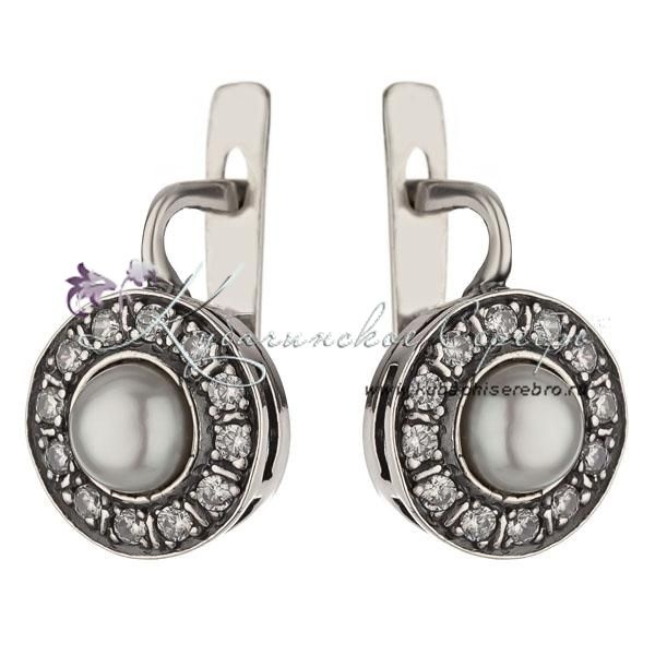 Серьги из серебра с жемчугом, арт №8097