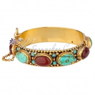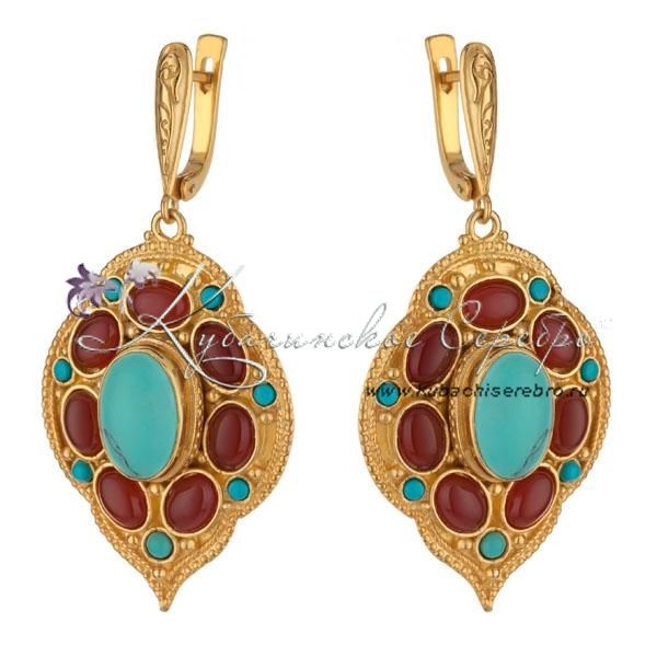 Серебро 875 пробы. С позолотой 999 пробы. Вставка - камень бирюза и сердолик. Изделие в фирменной подарочной упаковке.