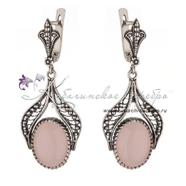 Серебряные серьги с розовым кварцем, арт №8292/2