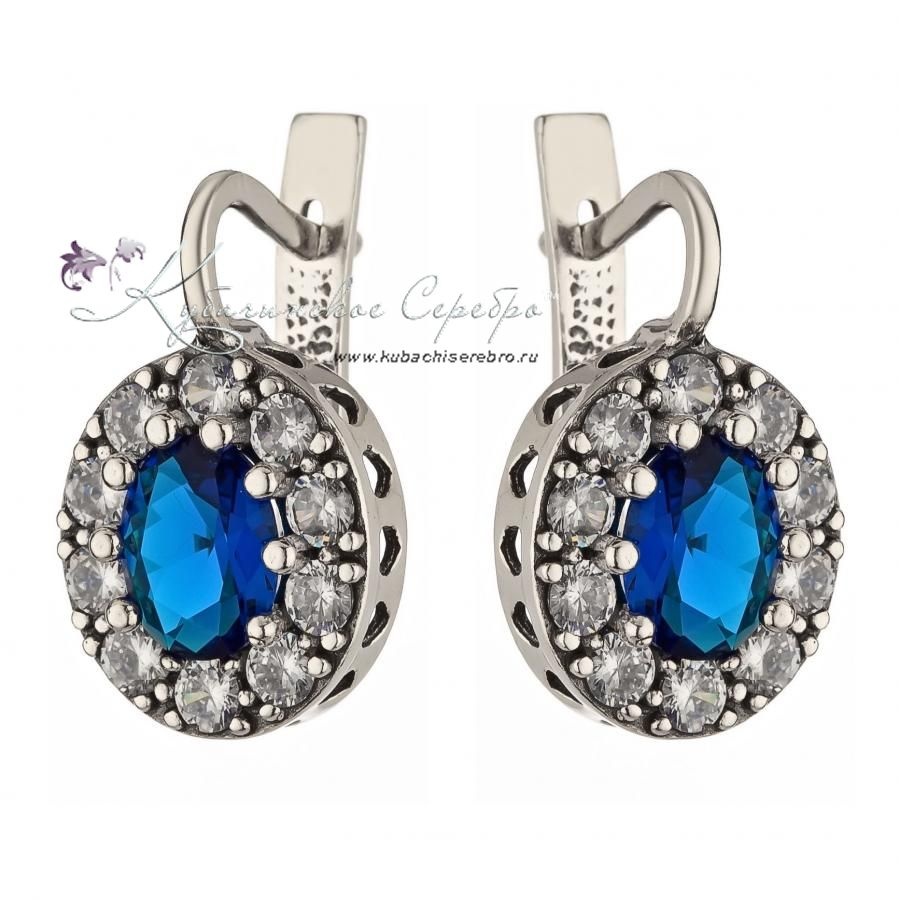 Серьги из серебра с синими камнями, арт №2267