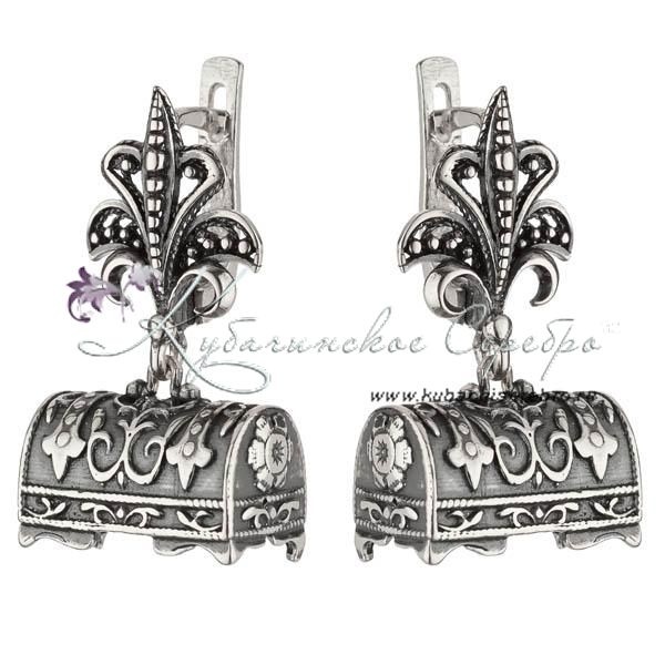 Серьги серебряные "Сундук" с чернением, арт №8522